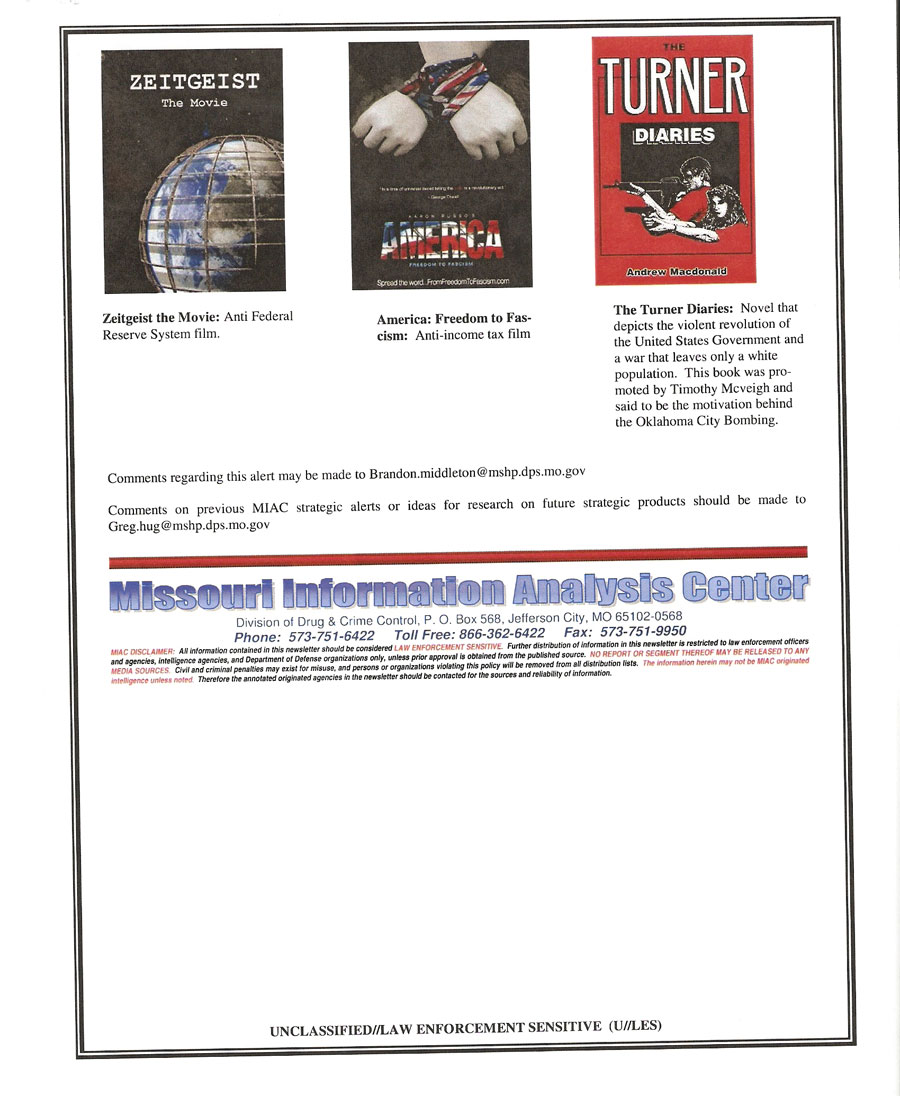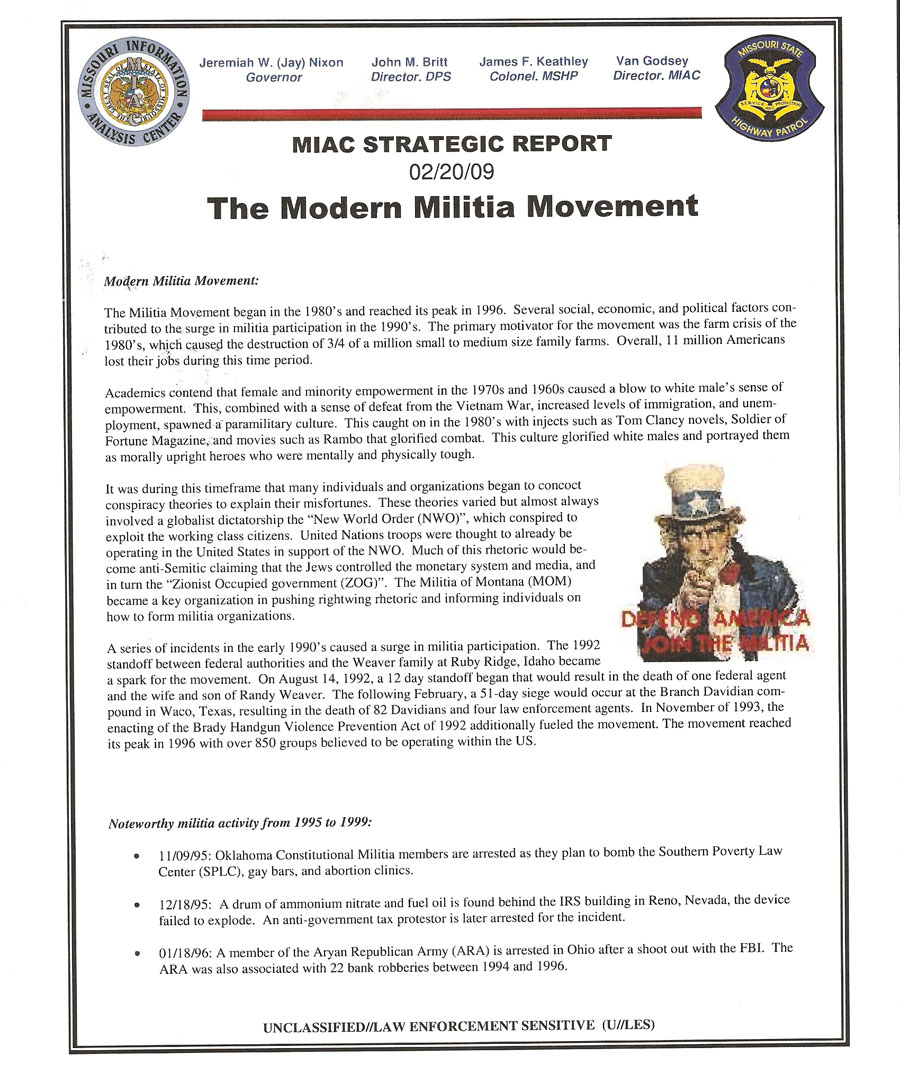 • MIAC — A "Homeland Security" Fusion Center Defines Ordinary Americans as Terrorists! (Click on documents below)