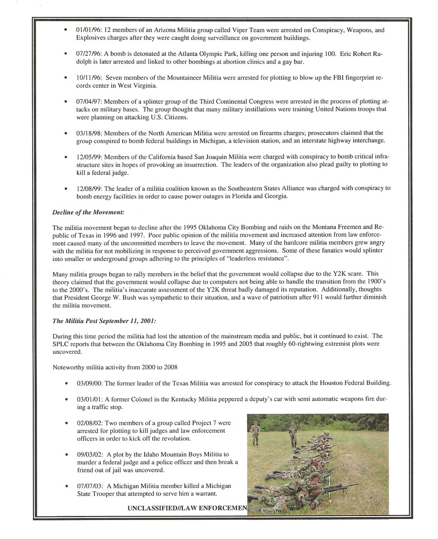 • "...The right wing patriot movement...remains a continuing threat in America today." — Testimony of FBI Director Robert Mueller III, Senate Committee on Intelligence, U.S. Senate, February 16, 2005