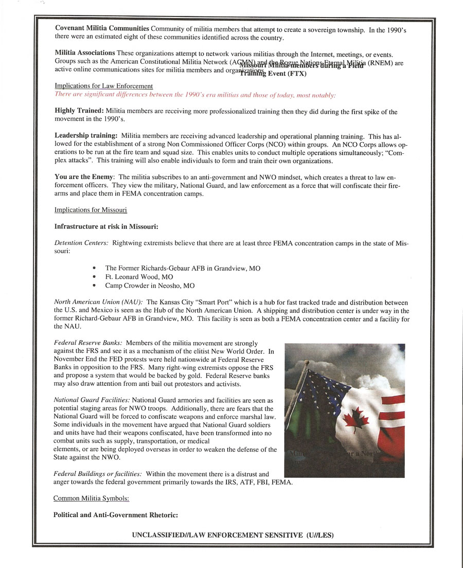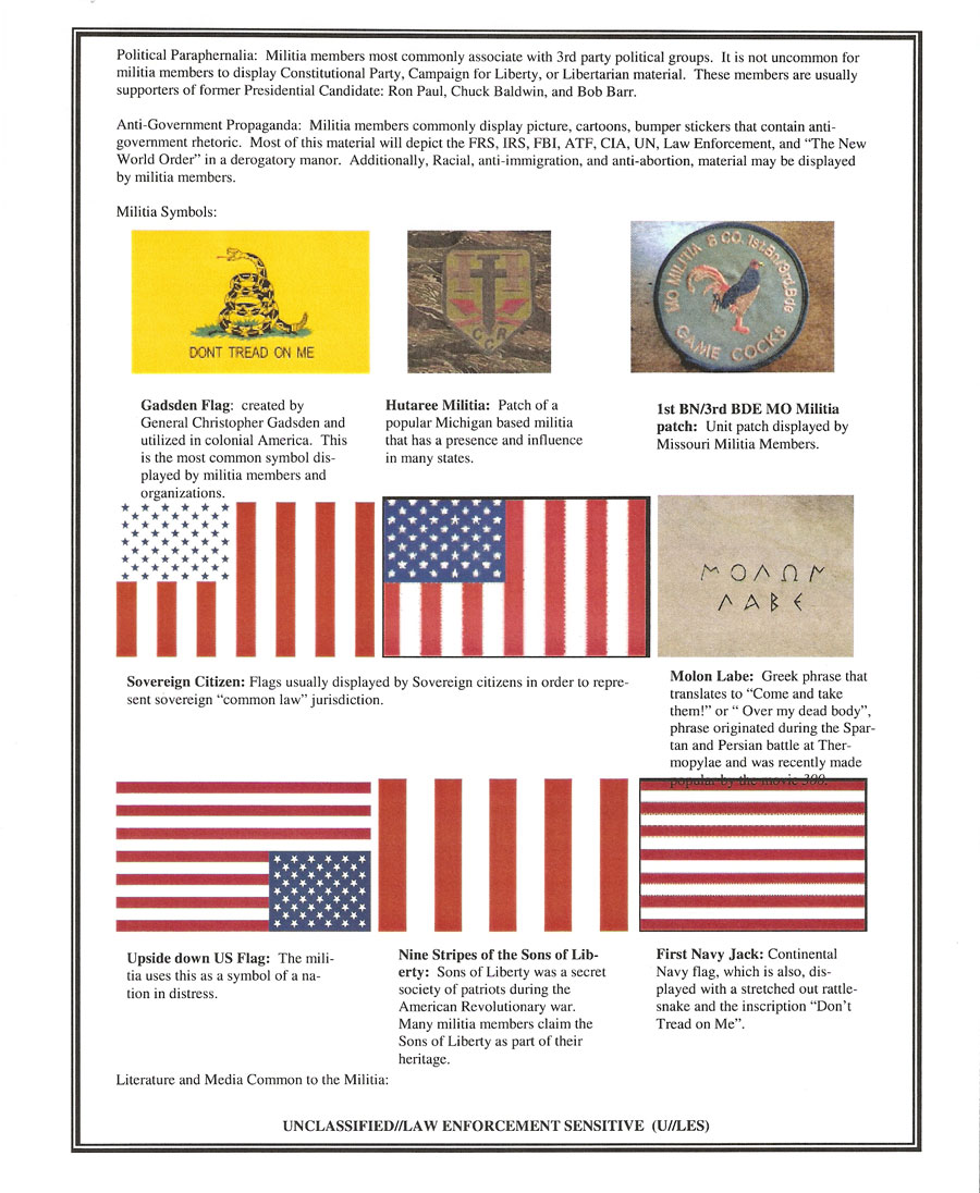 • FBI Joint Terror Task Force flyer: "If you encounter any of the following..." (Click on thumbnail images below)